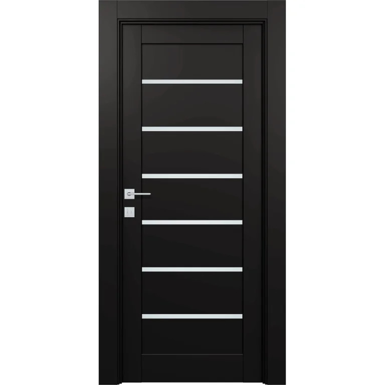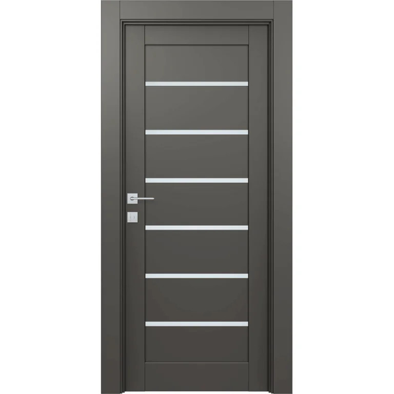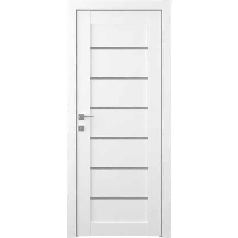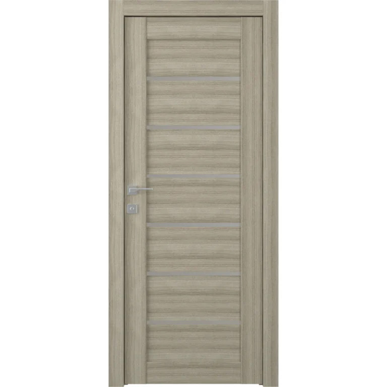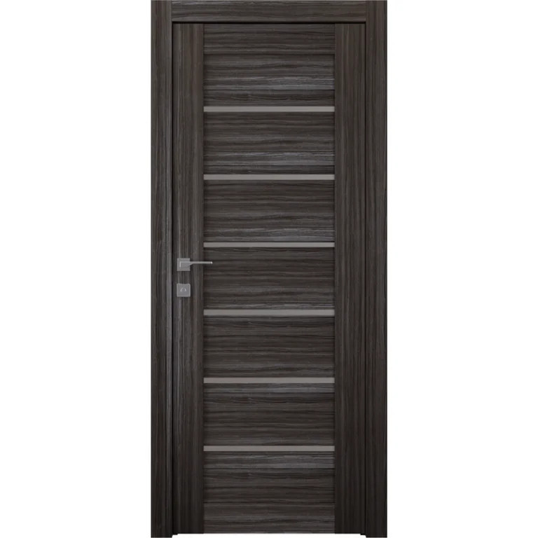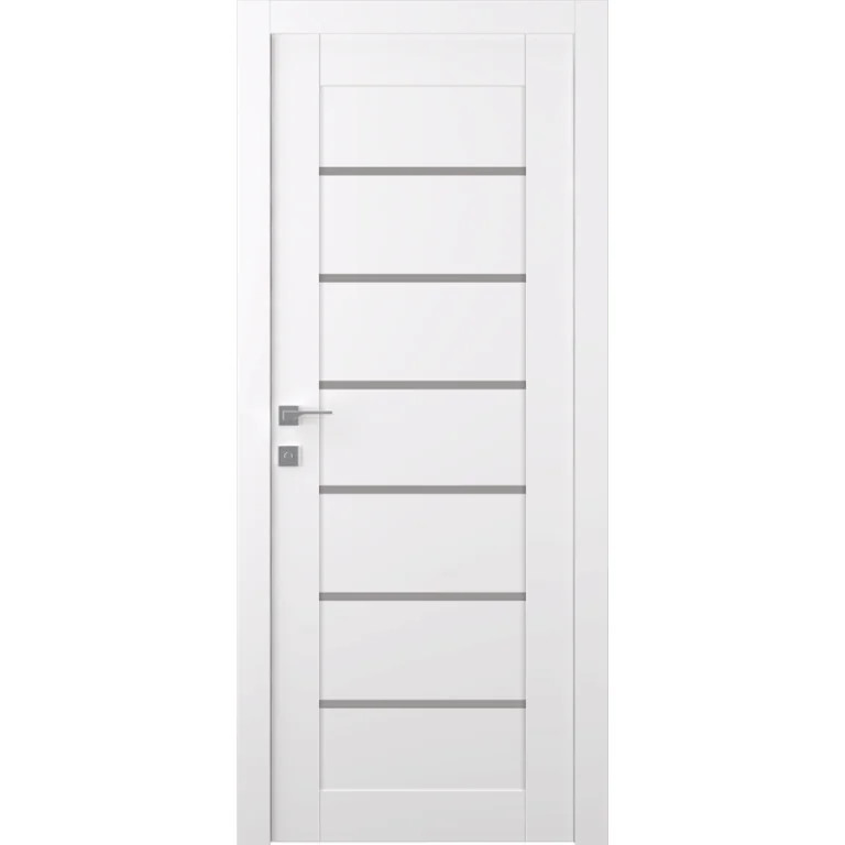 The Alba door pairs a neutral modern finish with crisp geometric lines and six frosted glass inserts that brighten any interior. Built in the traditional stile-and-rail method using solid lumber components and an MDF core, it offers reliable durability, sound insulation, and warmth. The Alba's finish is moisture-resistant, stable in varying temperatures, and easy to maintain with a simple wipe-down. Installation is streamlined with the patented EZ-Hang system, allowing fast, shim-free mounting at any stage of construction.