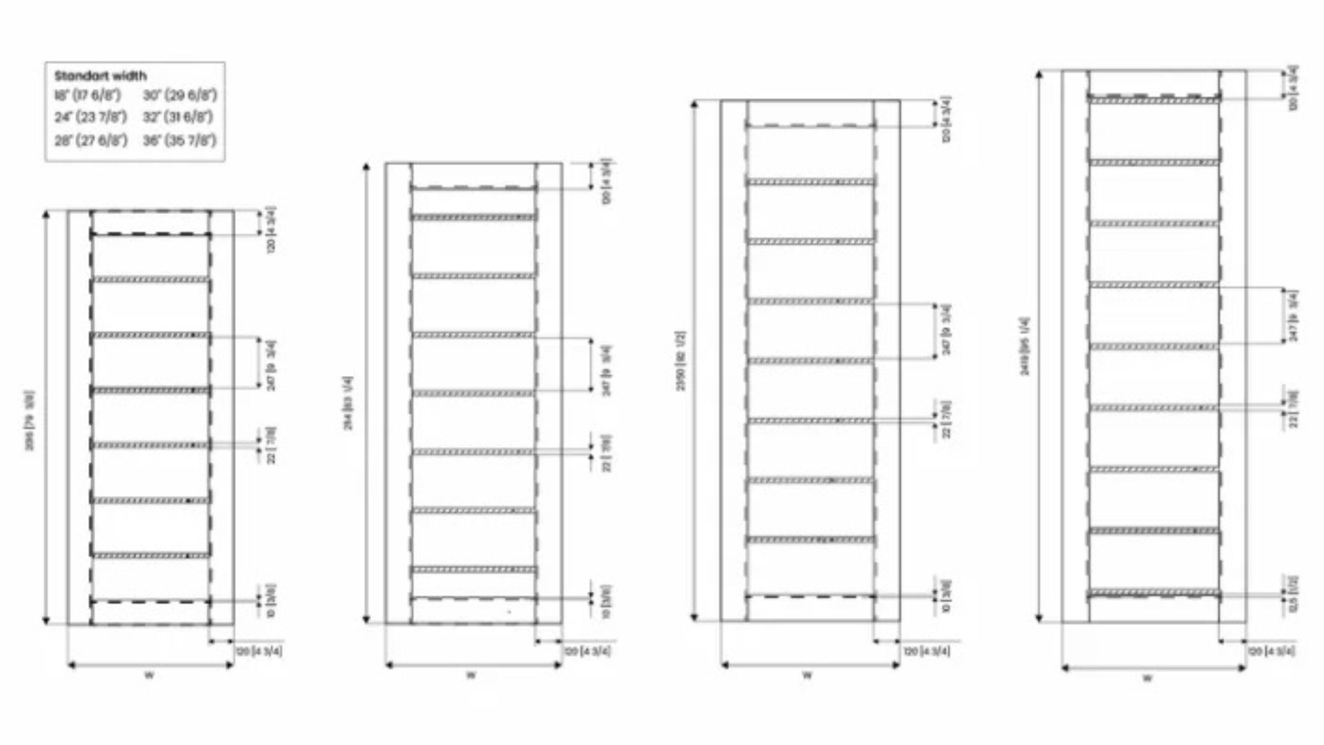 Stock Width: 17 13/16'', 23 13/16'', 27 13/16'', 29 13/16'', 31 13/16'', 35 13/16''
